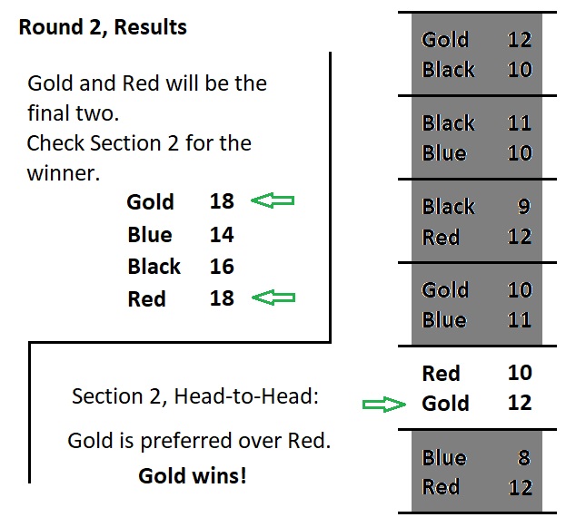 The Approval vote is the Semifinal. The Head-to-Head section determines the people’s favorite of the final two.